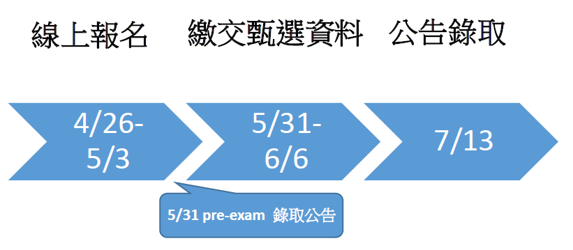 甄選資料格式下載,請學員按照主辦單位所提供的甄選資料格式填寫,並將相關的成績證明或參與活動證明等佐證資料,轉成一份 PDF 後,於 5/31-6/6 上傳至 https://ais3.org/ 網站,將於 7/13 前以 e-mail 方式個別通知報名評選結果,並於本課程網頁公告錄取名單。